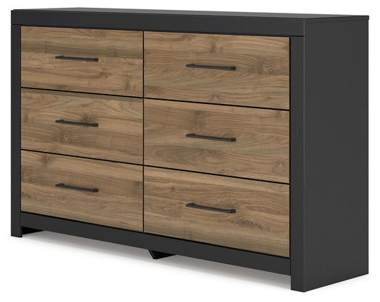 Vertani - Black / Honey Brown - Six Drawer Dresser