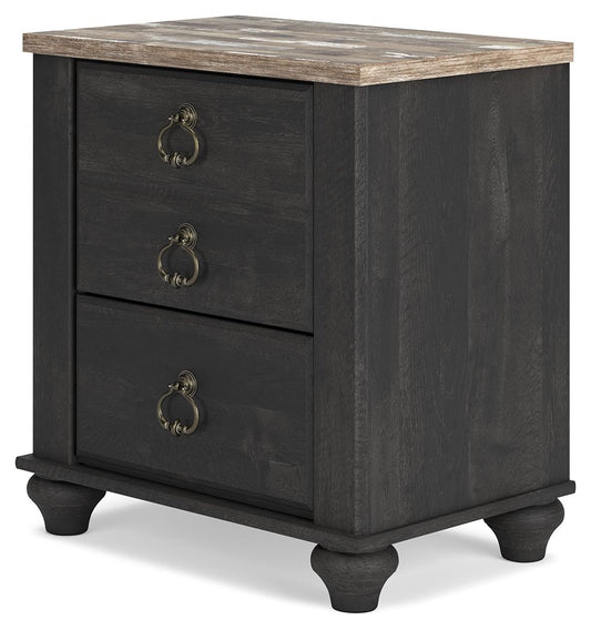 Vessalli - Black / Gray - Two Drawer Nightstand