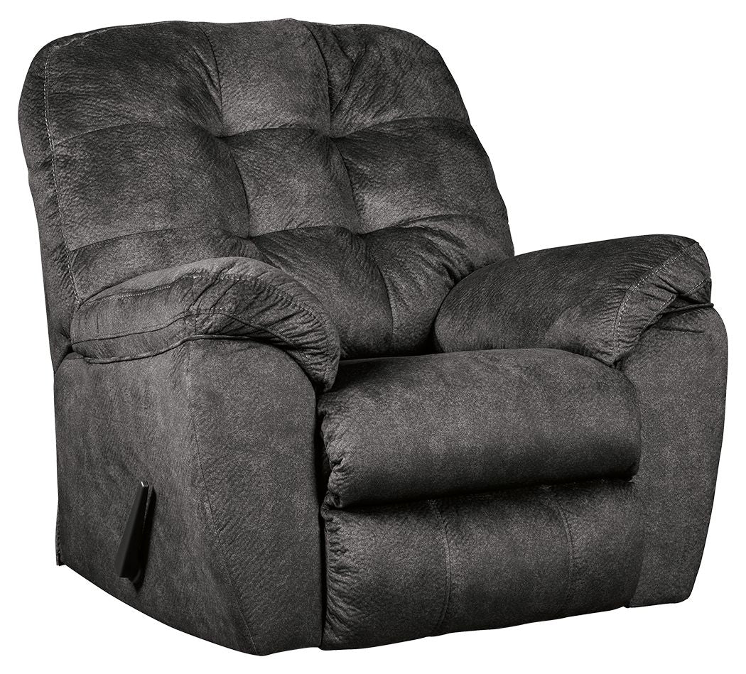 Looking for the perfect blend of decadent comfort and contemporary flair? Feast your eyes on this sensational rocker recliner. Tufted box cushioning and thick pillow top armrests brilliantly merge style and a sumptuous feel.