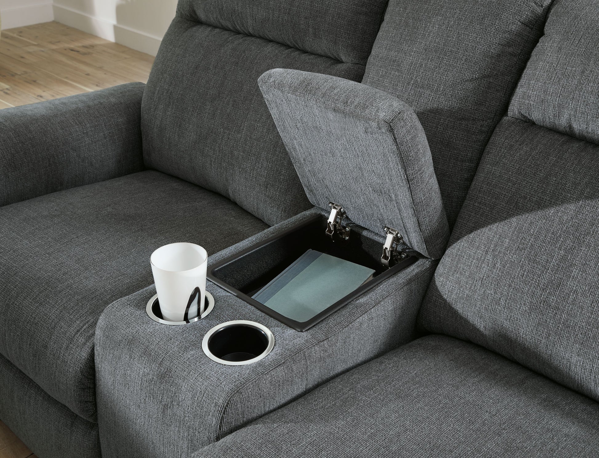 The ability to go from fully upright to relaxed and stretched out, all at the touch of a button, awaits. A beautiful blend of plush upholstery and casual style, this power reclining loveseat with console invites you to sink into ultimate comfort. Easily tuck away remotes or gaming controllers and keep drinks close by with its handy console. Whether you're hosting guests or lounging alone, you’ll find it hard to leave your living room—that’s a given.