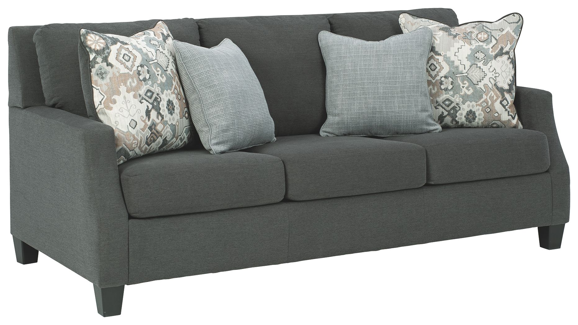 Dressed to impress with distinctive cutaway arms, this sofa is an above-and-beyond choice for your fashionable abode. Wrapped in a soft flatwoven charcoal fabric that’s naturally on trend, this designer sofa is sure to suit contemporary spaces and modern farmhouse places—and look right at home with classic and eclectic furnishings. That’s the beauty of a great transitional piece of furniture. That’s the beauty of this brilliantly done sofa.