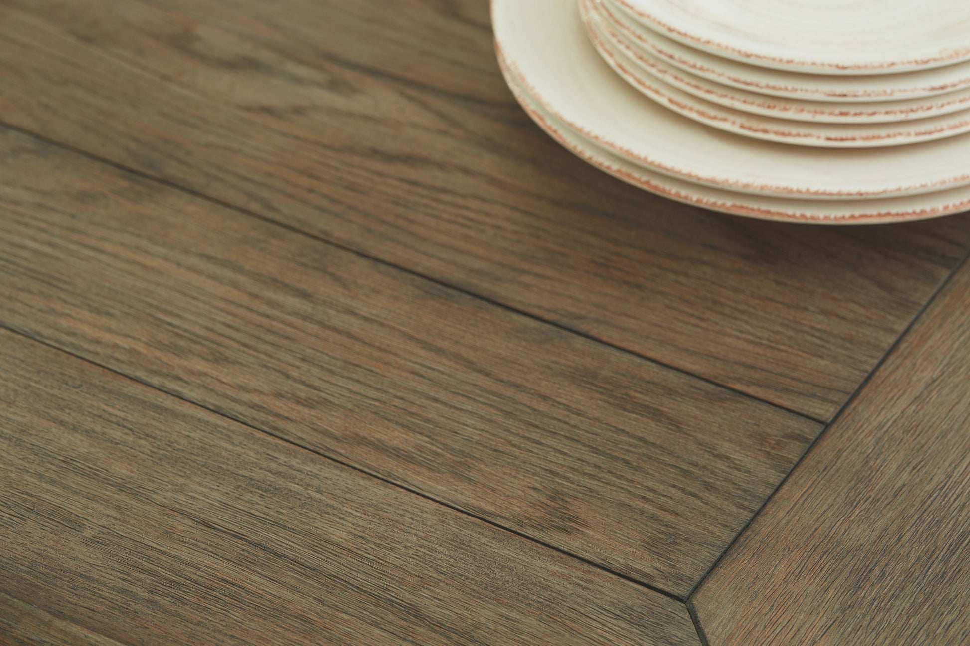 The beauty of this upholstered dining bench is something to savor. Serving up comfort and flair, this generously scaled counter-height bench entices with a cushioned seat covered in a heavy woven fabric that complements the antiqued white finish.