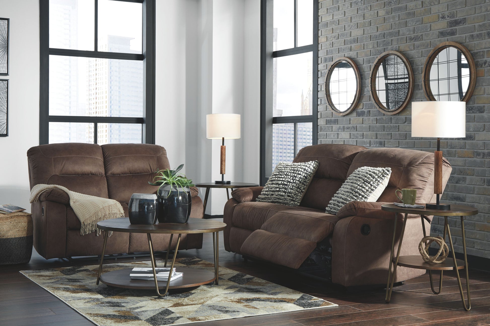 Looking for a sleek 2-seater? This reclining sofa is your saving grace. Coffee brown microfiber cover is soft to the touch and padded for your comfort. Beautiful lines exhibit exceptional craftsmanship. Smaller-than-normal scale brings quality to even compact spaces. Now you can worry less about finding the perfect recliner for your room and relax more.