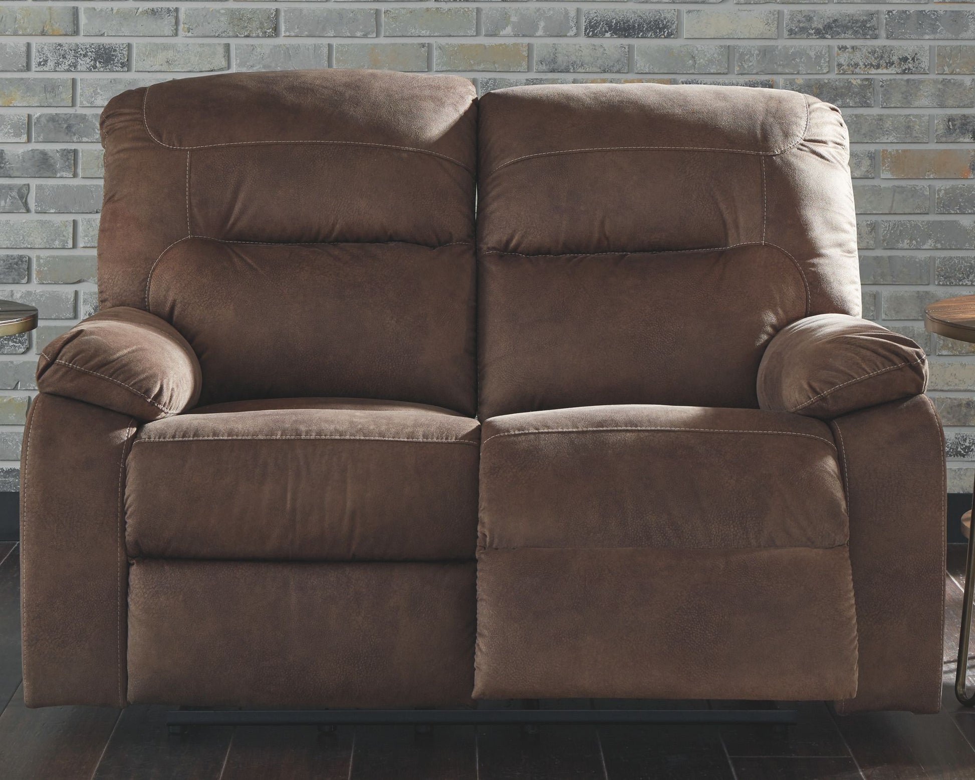 Looking for a sleek 2-seater? This reclining loveseat is your saving grace. Coffee brown microfiber cover is soft to the touch and padded for your comfort. Beautiful lines exhibit exceptional craftsmanship. Smaller-than-normal scale brings quality to even compact spaces. Now you can worry less about finding the perfect recliner for your room and relax more.