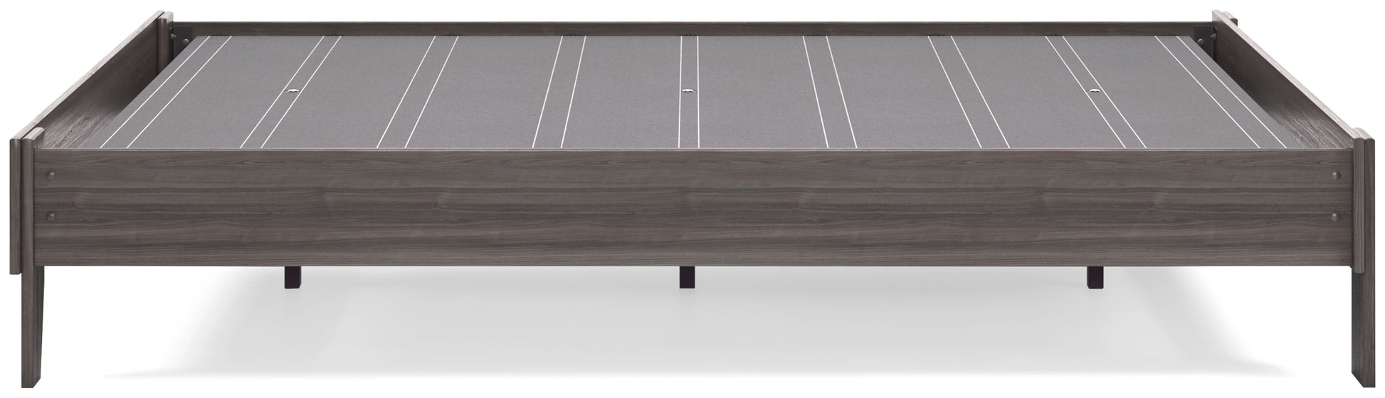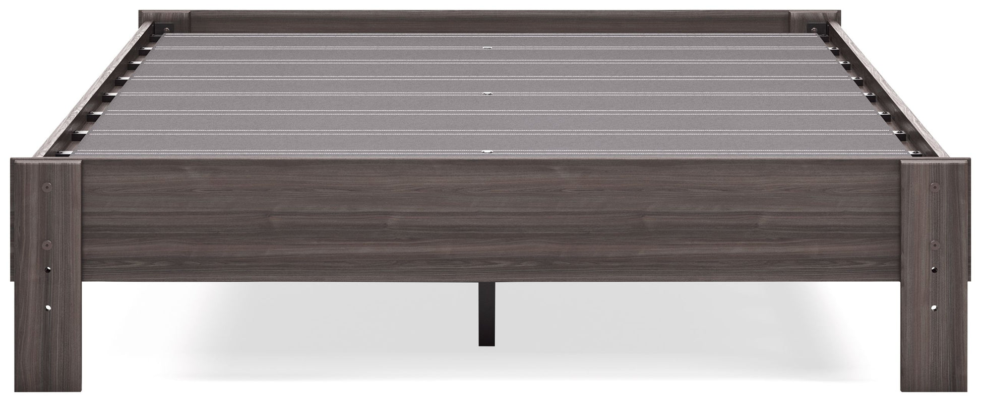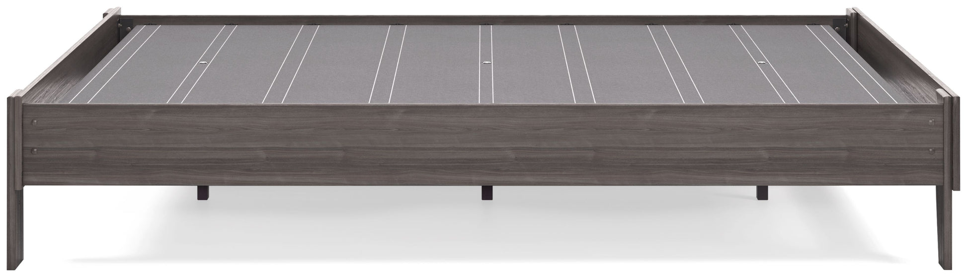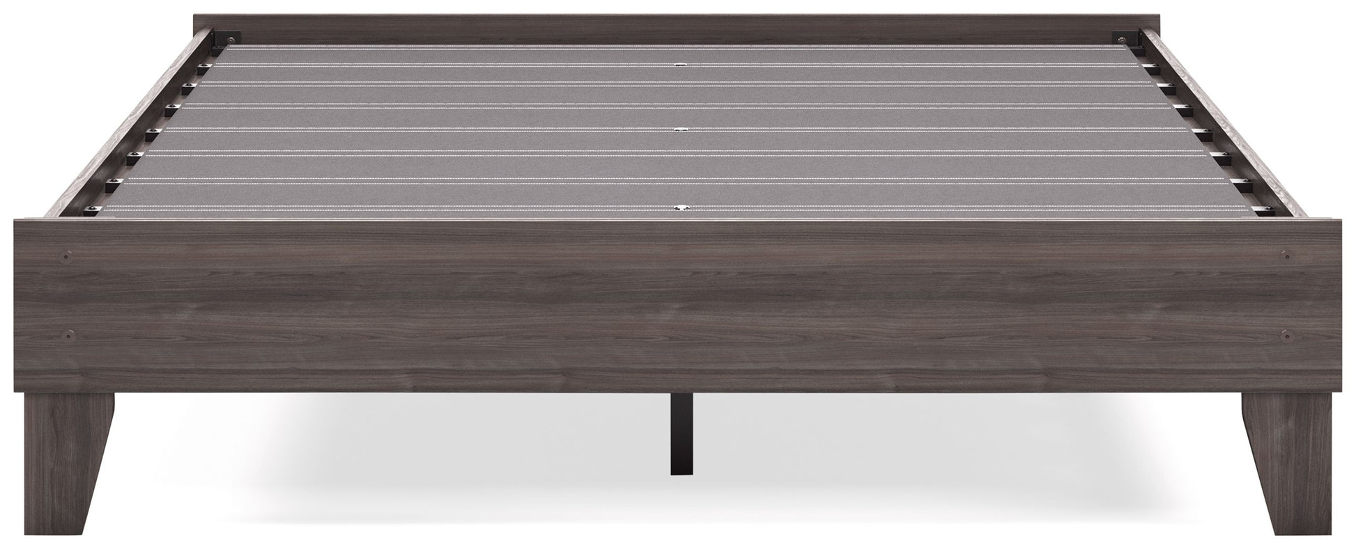 With clean lines evoking a mid-century modern mood, this full platform bed is designed to bring harmony to your bedroom retreat. Finished in a warm gray that enhances the soothing sensibility.