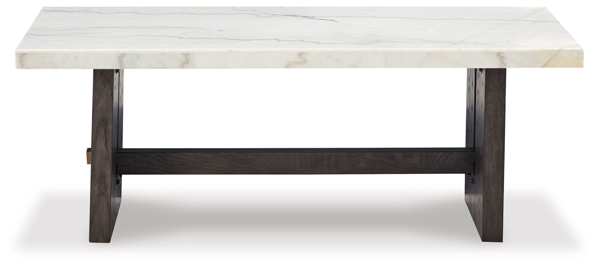 Dressed to thrill, this simply stunning coffee table offers a high-design look at a down-to-earth price. Ultra-sleek lines are accentuated with a dark waxy brown oak finish that’s so easy on the eyes. Clean-lined and modern, the plinth base and natural marble tabletop showcase quality craftsmanship and attention to detail. This table is the perfect centerpiece for a living room or family space, with a timeless look that's made to last.