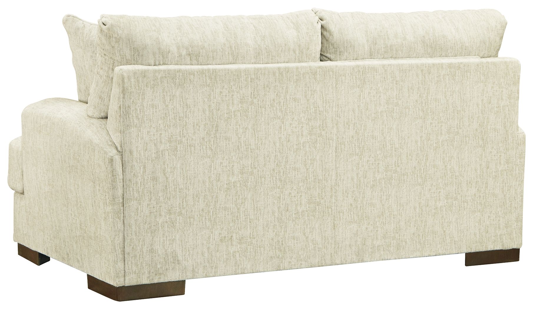 Easy on the eyes and irresistibly comfortable, this loveseat is covered in luxurious chenille microfiber in a light, neutral hue that blends beautifully in a room. Wide track arms have a contemporary look and plush cushions cradle you comfortably. Textured accent pillows in complementary colors add subtle contrast.