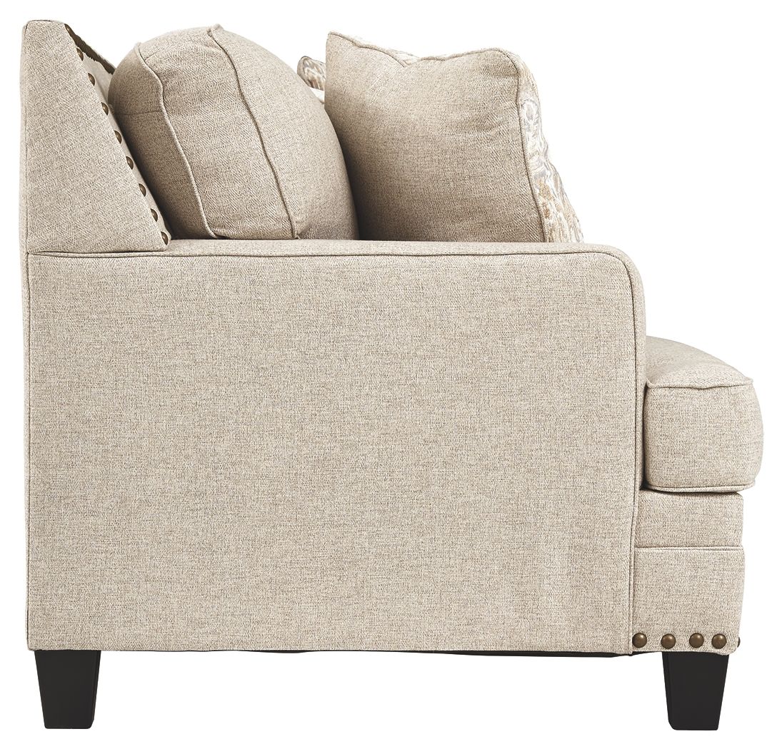 A case of contemporary and classic style influences coming together in a beautiful way, this sofa in beige brings a fresh perspective to modern farmhouse living. Distinctive elements include t-cushions that wrap around setback track arms, nailhead trim and a lovely linen-weave upholstery for an up-to-date feel. Muted hue designer throw pillows master the art of subtlety.