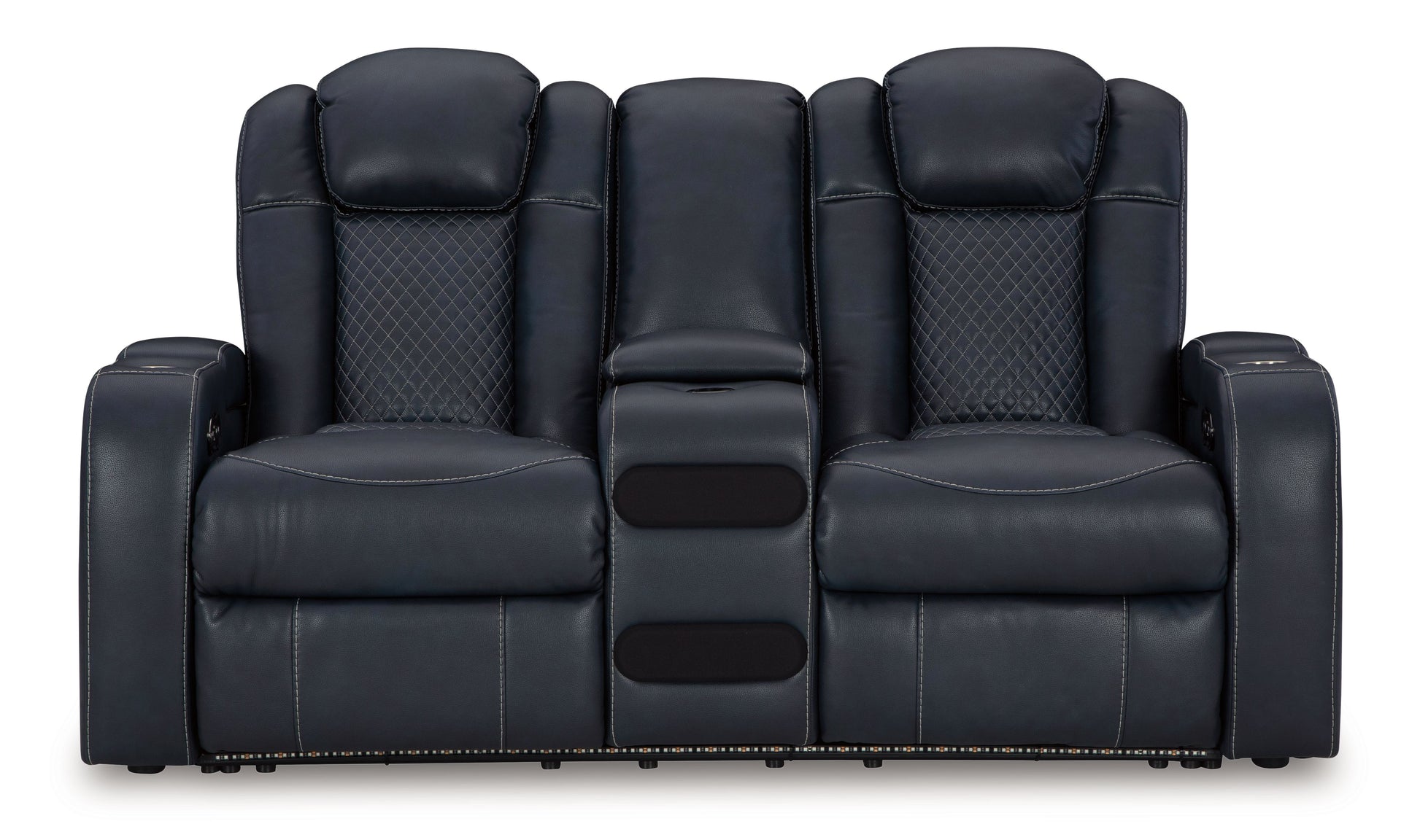 Fyne-dyme - Sapphire - Power Reclining Loveseat With Console/Adj Hdrst