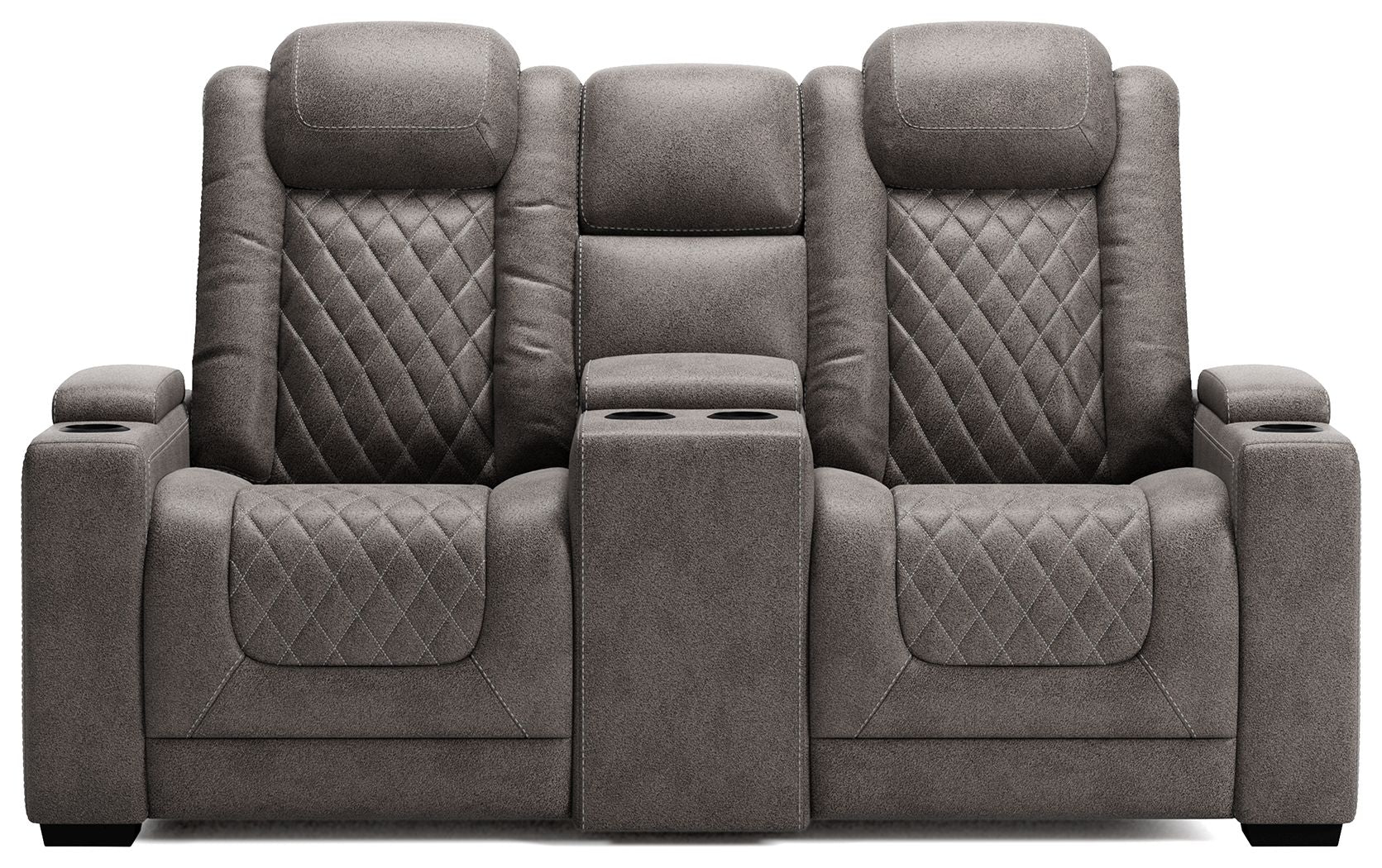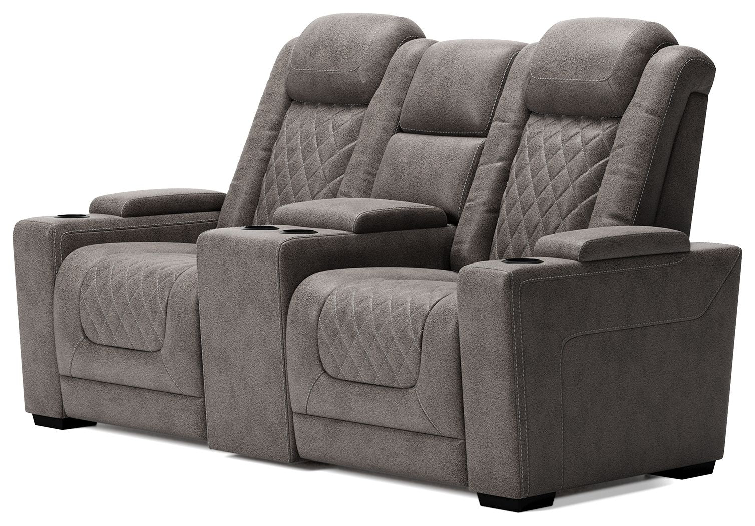 Hyllmont - Gray - Pwr Rec Loveseat/Con/Adj Hdrst