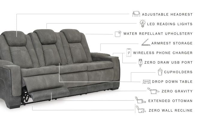 Next-gen Durapella - Slate - Power Reclining Sofa/Adj Headrest