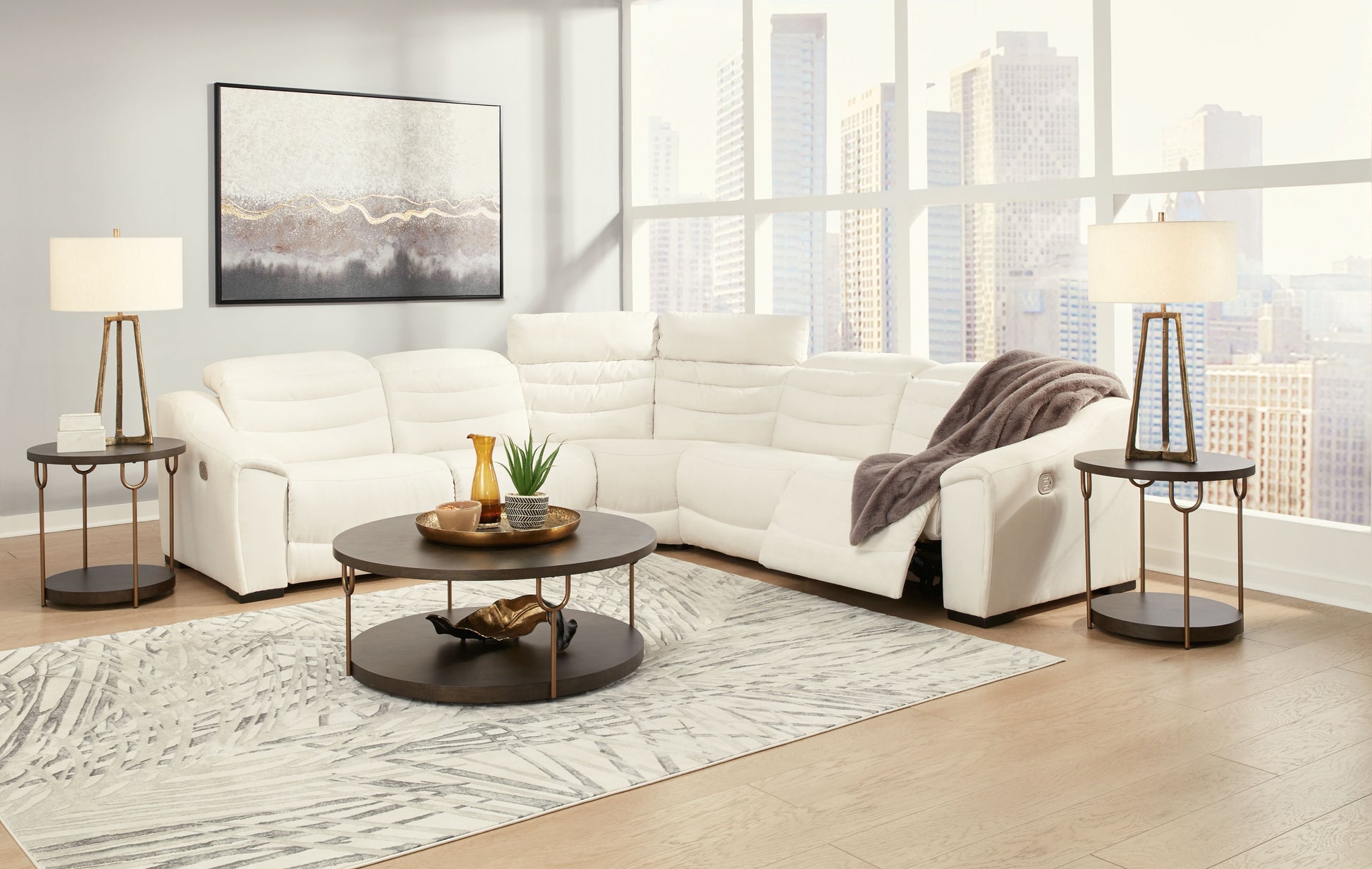 Modern comfort never looked so good. Sporting sloped track arms, wide, generous cushions and bustle-back stitching for high-fashion flair, this power sectional is the ultimate choice in comfortably cool, contemporary style. Indulging with a suede-like faux leather that emulates nubuck leather, the sectional’s family- and pet-friendly upholstery is the stuff dreams are made of. Factor in the added perks of an Easy View™ power adjustable headrest and USB charging, and you’ve got a power reclining sectional that truly caters with style, comfort and convenience.