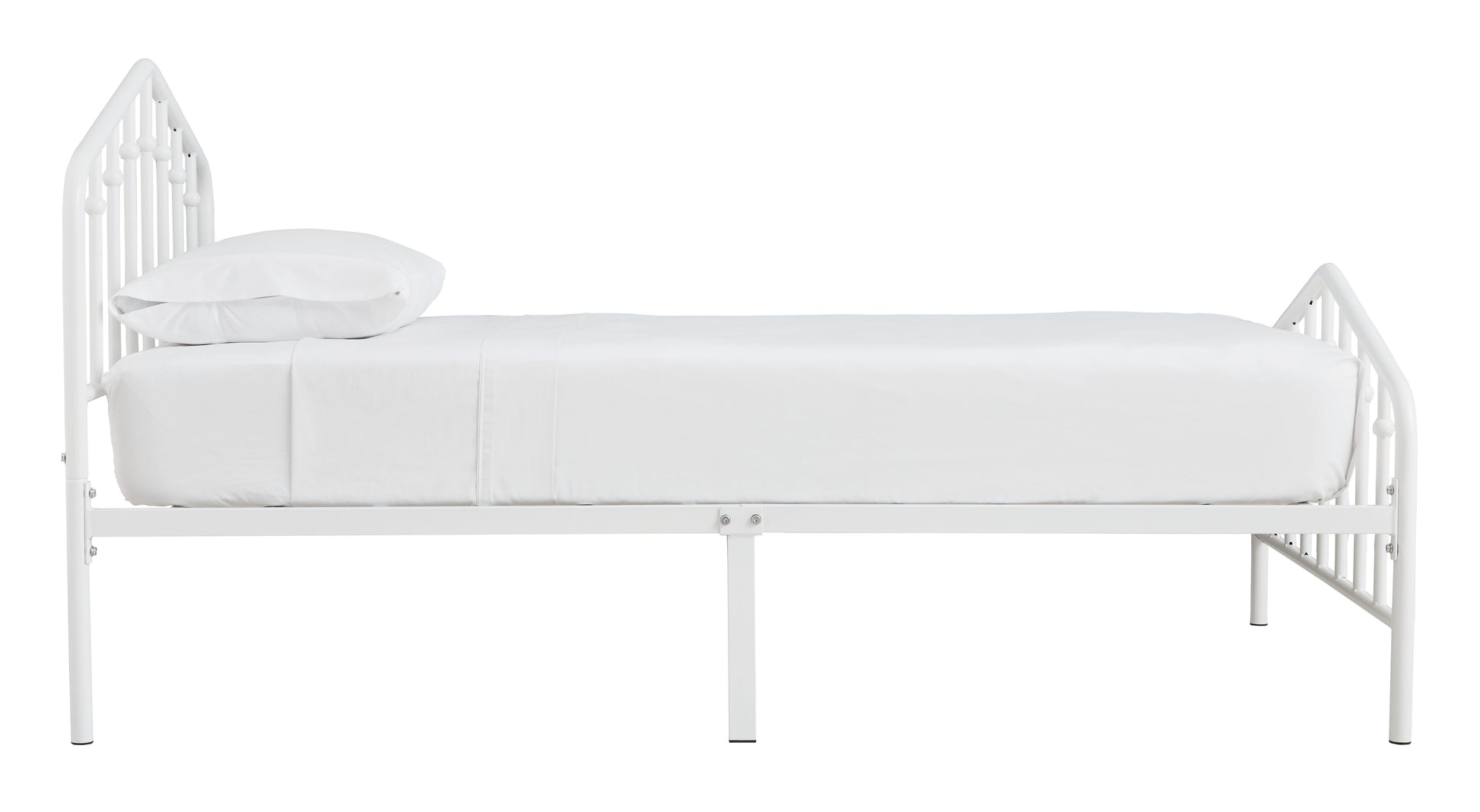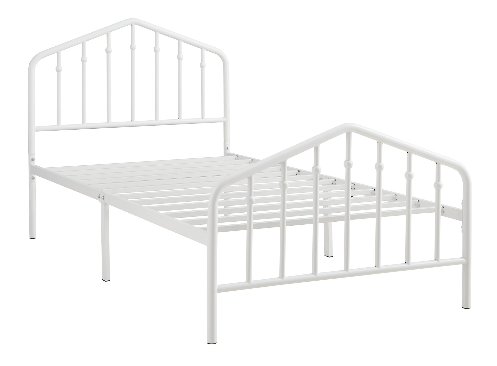 With a practical sense of beauty, this twin bed brings a subtle decorative element to your room with its white finish. Stylish spindles mounted on a gently arching top rail add visual interest without being too flashy. Bed setup is simple, with no additional foundation required.
