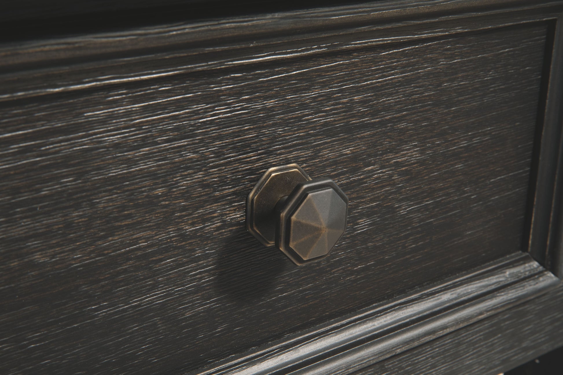 Shabby chic with a hint of down home country. This rectangular end table with textured black finish is all the talk of today’s design world. Wood grain shows through the weathered gray-brown top in all of its earthy pleasure. Framed drawer is adorned with lovely traditional hardware.