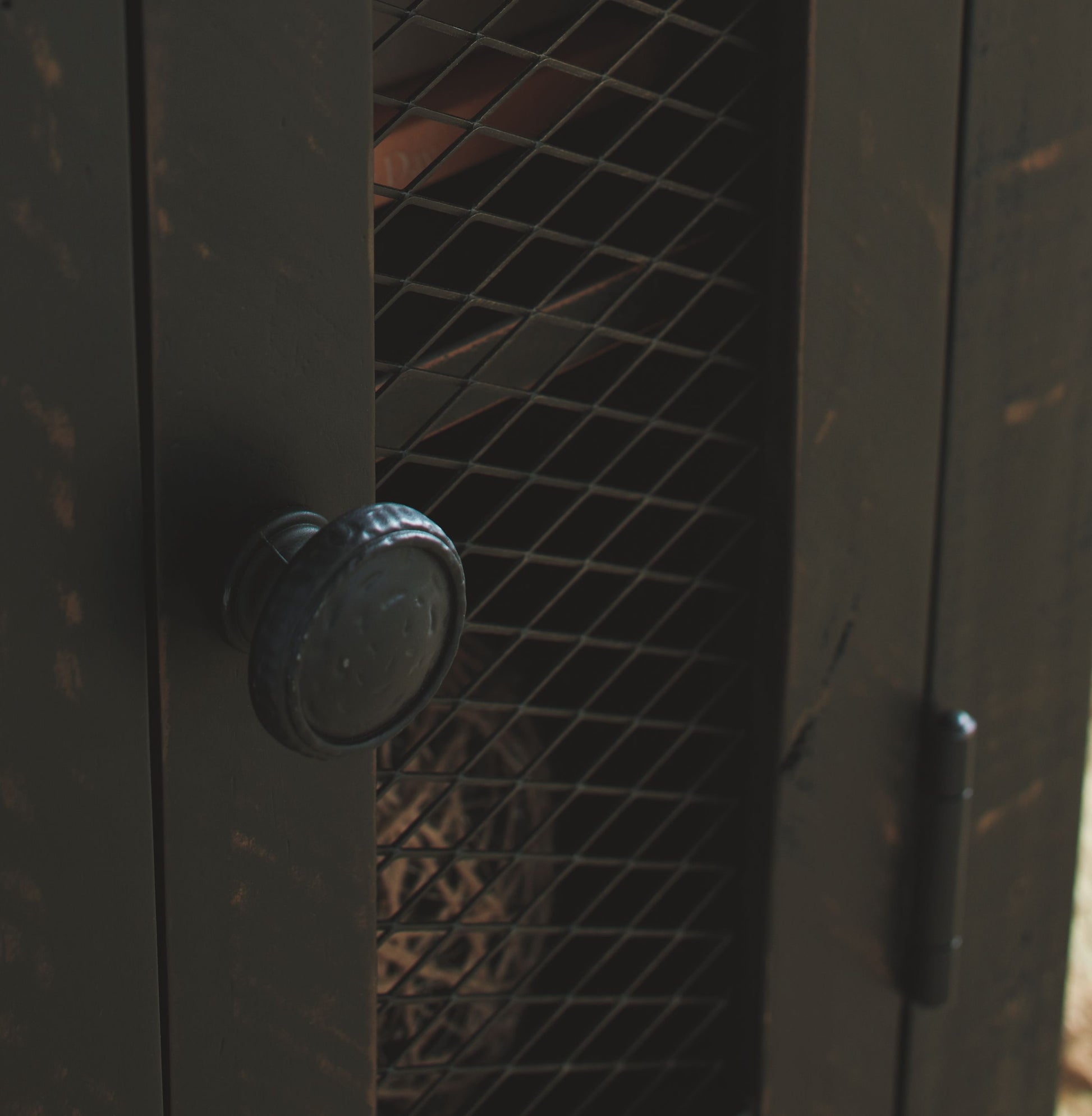To those with an eye for the best in rustic farmhouse living, this two-tone chairside end table doubles up on charm. Designer touches include plank-effect styling, distress marks and a wire mesh door front for added character.